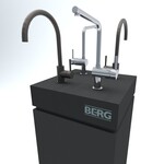 BERG EKSPOZYTOR CZARNY NA 3 BATERIE + 2 dozowniki lub 5 baterii - sklepowy z logo BERG + półki na kartony z bateriami 55x55 podstawa + 150 cm wysokość