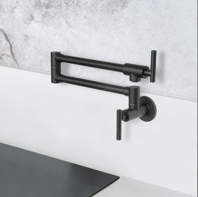 Ta bateria kuchenna ścienna w eleganckim czarnym macie łączy prostą formę z wyjątkową funkcjonalnością dzięki wyciąganemu, składanym ramieniu o zasięgu aż 57 cm. Wyposażona w ceramiczny zawór, obrotową konstrukcję i komplet montażowy, zapewnia wygodę użytkowania oraz trwałość na długie lata.