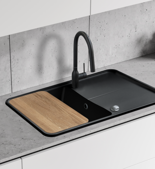 Nowoczesna, matowa czerń podkreśla minimalistyczny styl i świetnie współgra z industrialnymi aranżacjami kuchni.