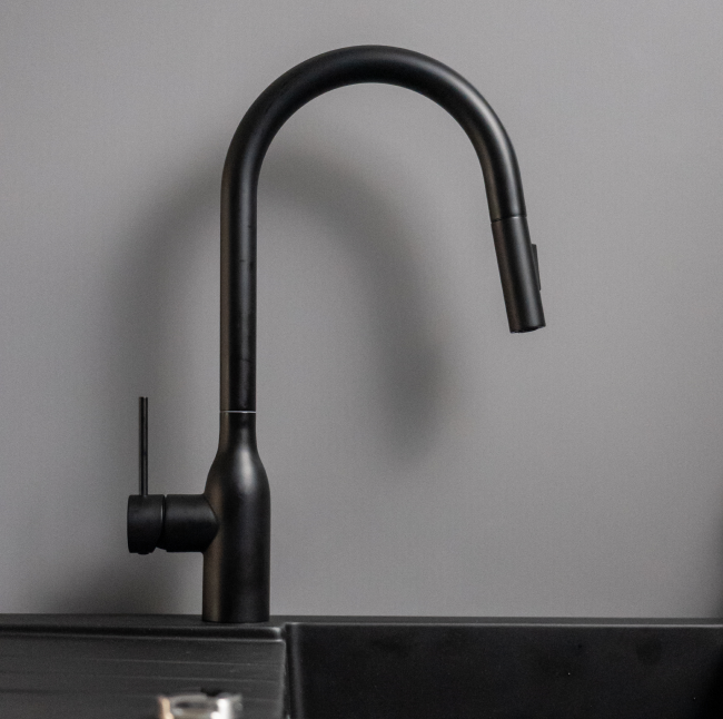 Nowoczesna, matowa czerń podkreśla minimalistyczny styl i świetnie współgra z industrialnymi aranżacjami kuchni.