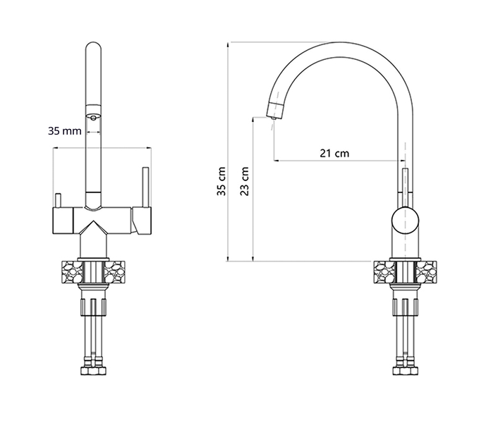 Zasięg wylewki wynoszący 250 mm oraz wysokość 330 mm zapewniają komfort użytkowania w różnych sytuacjach kuchennych.