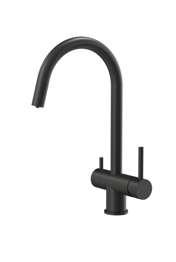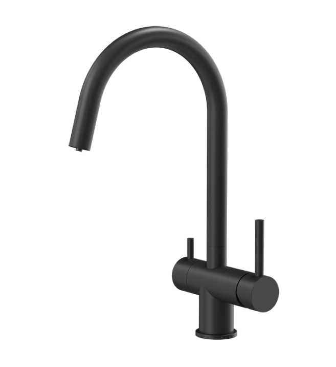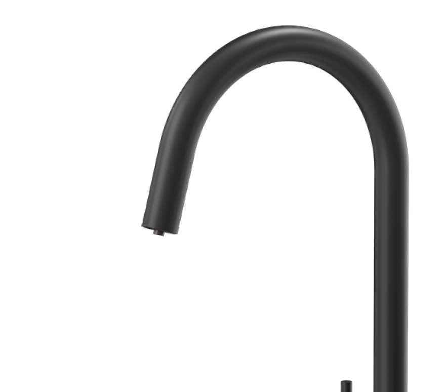 Czarny elastyczny wąż gumowy zapewnia optymalny zakres ruchu, umożliwiając swobodne manewrowanie bez ograniczeń. Ten innowacyjny design baterii ułatwia mycie naczyń czy zlewozmywaka oraz umożliwia napełnianie nawet największych garnków.
