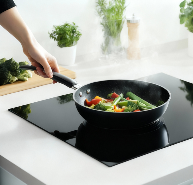 Jakich naczyń nie używać? Naczynia wykonane z czystej stali nierdzewnej, aluminium, miedzi bez podstawy magnetycznej, szkła, drewna, porcelany lub ceramiki nie nadają się do płyt indukcyjnych. Ważne wskazówki: Unikaj naczyń z postrzępionymi krawędziami lub zakrzywioną podstawą. Upewnij się, że podstawa naczynia jest gładka, płaska i ma odpowiedni rozmiar do strefy grzewczej. Zawsze umieszczaj naczynie centralnie na polu grzewczym. Podnoś i opuszczaj naczynie – nigdy nie przesuwaj go po płycie, aby uniknąć zarysowań. Dzięki tym zasadom Twoja płyta indukcyjna będzie działać sprawnie i bezpiecznie przez długie lata!