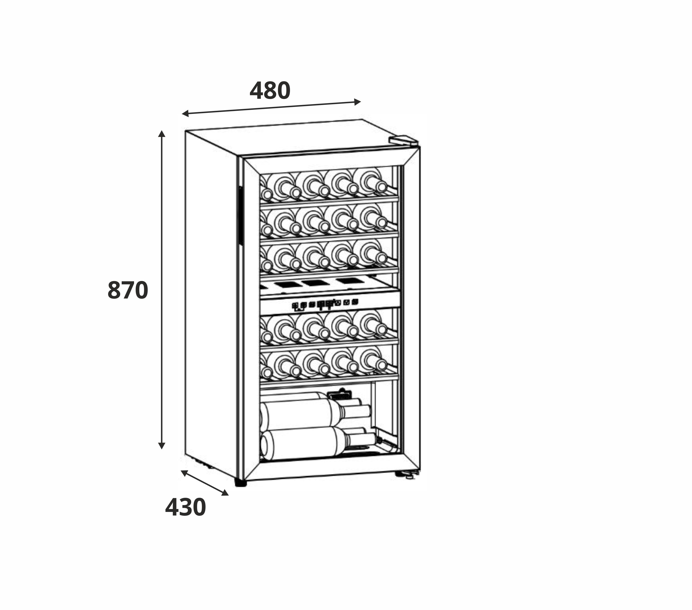 Pojemność winiarek określa się w standardowych butelkach Bordeaux, co jest powszechnie przyjętą miarą w branży, ułatwiającą porównywanie modeli. Butelka Bordeaux ma pojemność 750 ml i wymiary: ok. 80 mm średnicy i 300 mm wysokości. Dlaczego akurat ten format?