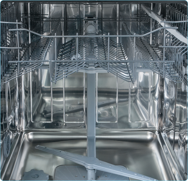 System filtracji składa się z trzech etapów: filtr wstępny zatrzymuje większe resztki jedzenia, filtr mikrofiltracyjny usuwa mniejsze cząstki, a filtr wirujący (ceramiczny) wychwytuje drobne zanieczyszczenia, zapewniając czystość wody. Dzięki temu woda wykorzystywana do mycia jest zawsze czysta, co przekłada się na nieskazitelne efekty mycia i doskonałą kondycję Twojej zmywarki.