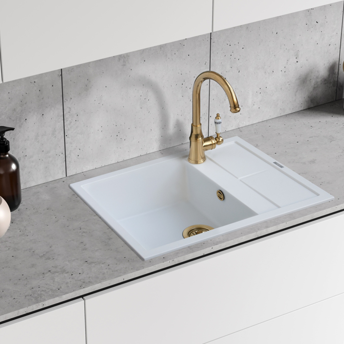 Zlewozmywak został precyzyjnie zaprojektowany do bezproblemowej integracji ze standardową szafką 60 cm, tworząc z nią spójną, estetyczną całość, która maksymalnie wykorzystuje dostępną przestrzeń.