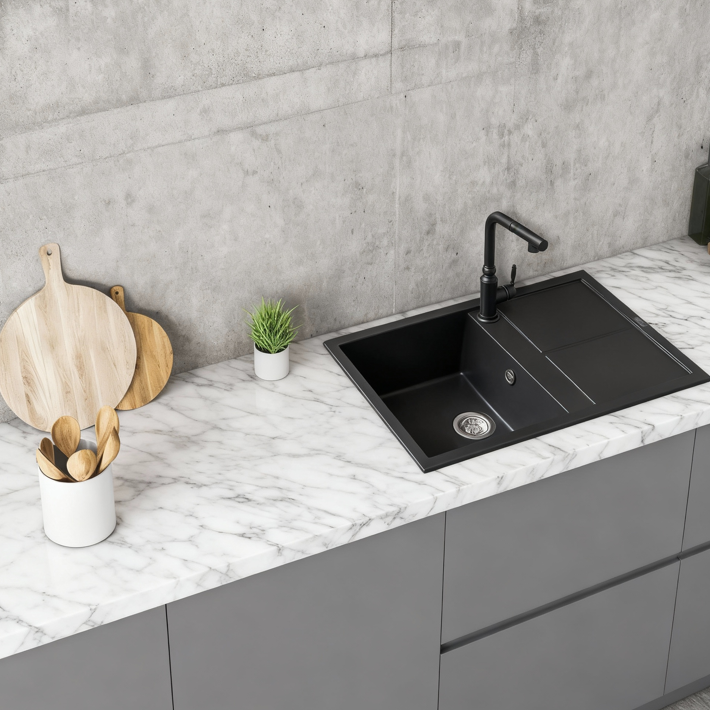 Dzięki zastosowaniu mikrocząsteczek NANOCERAMU w procesie produkcyjnym, powierzchnia zlewozmywaka zyskuje wyjątkową twardość i odporność na typowe kuchenne wyzwania. To połączenie naturalnej wytrzymałości granitu z precyzją inżynierii materiałowej sprawia, że zlew jest praktycznie niezniszczalny w codziennej eksploatacji, stanowiąc idealne rozwiązanie nawet dla najbardziej wymagających kuchni.