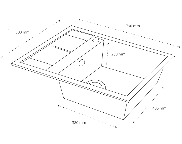 Wymiary 790x500 oraz głębokość zlewozmywaka 200 mm pozytywnie wpływa na komfort użytkowania. Przed zakupem sprawdź wymiary aby upewnić się, że pasuje do Twojej kuchni i otworu, w którym ma się znajdować.