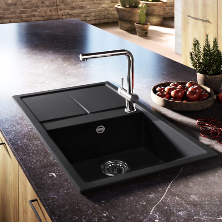 Zlewozmywak nanoceramiczny CUADRADO łączy nowoczesne wzornictwo, trwałość materiałów i praktyczne rozwiązania, takie jak automatyczny korek, duża komora i opcjonalny ociekacz, by sprostać potrzebom nawet najbardziej wymagających użytkowników.