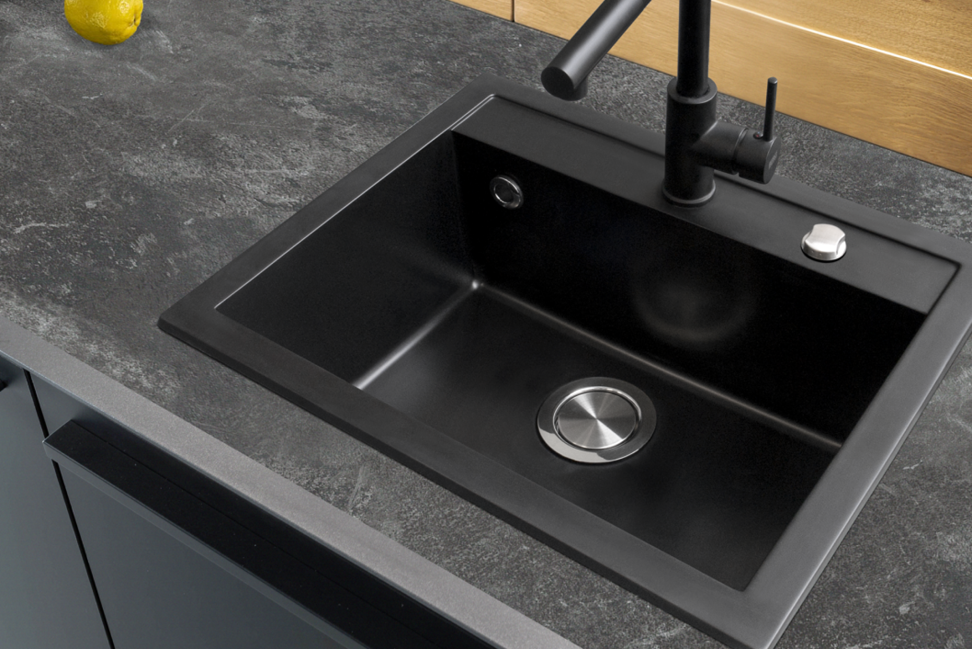 Kolor onyx z delikatnym, naturalnym ziarnem, która nadaje zlewozmywakowi wyjątkowy, luksusowy wygląd. Doskonale komponuje się zarówno z nowoczesnymi wnętrzami w stylu loftowym czy industrialnym, jak i z bardziej klasycznymi aranżacjami, podkreślając charakter kuchni. Dodatkowo, ta kolorystyka jest łatwa w codziennym użytkowaniu – dobrze maskuje drobne zabrudzenia i ślady wody, zachowując estetykę nawet przy intensywnej eksploatacji.