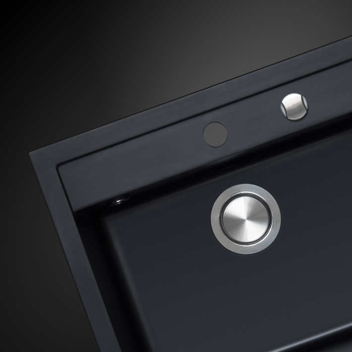 Zintegrowany automatyczny korek umożliwia opróżnianie komory zlewu bez konieczności zanurzania rąk w wodzie – wystarczy jeden delikatny ruch, by go aktywować. Jego metalowy cover nie tylko stanowi elegancką ozdobę, podkreślającą nowoczesny design zlewozmywaka, ale także pełni funkcję praktyczną, chroniąc mechanizm przed zabrudzeniami i uszkodzeniami. To połączenie innowacyjnej funkcjonalności z designerskim wykonaniem, które podnosi komfort i higienę codziennego użytkowania.