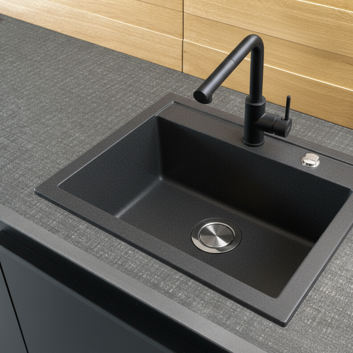 Dzięki zastosowaniu mikrocząsteczek granitu w procesie produkcyjnym, powierzchnia zlewozmywaka zyskuje wyjątkową twardość i odporność na typowe kuchenne wyzwania. To połączenie naturalnej wytrzymałości granitu z precyzją inżynierii materiałowej sprawia, że zlew jest praktycznie niezniszczalny w codziennej eksploatacji, stanowiąc idealne rozwiązanie nawet dla najbardziej wymagających kuchni.