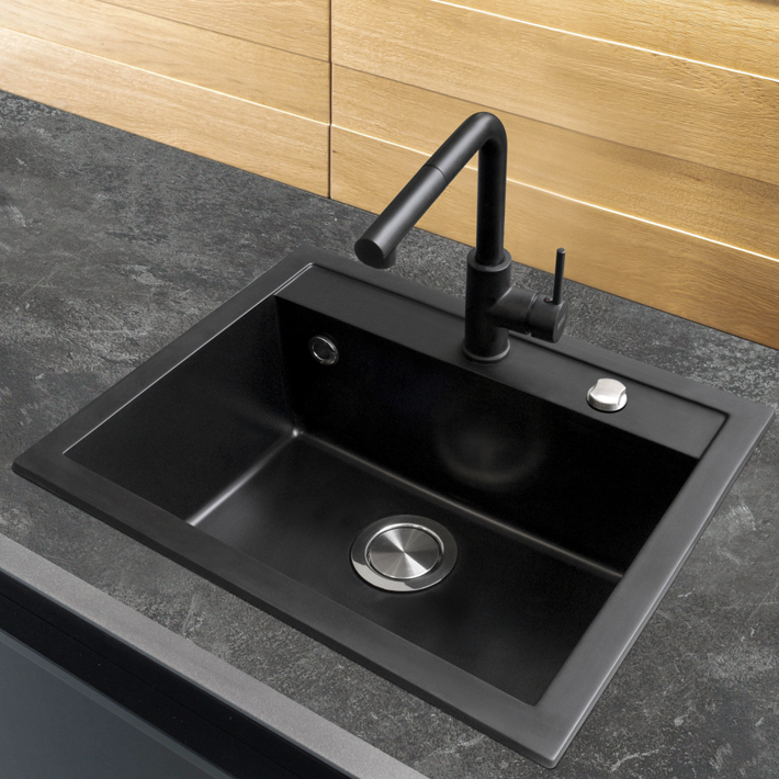 Kolor czarny bazalt charakteryzuje się głęboką, intensywną czernią oraz idealnie gładką powierzchnią, która podkreśla nowoczesny i elegancki charakter zlewozmywaka.