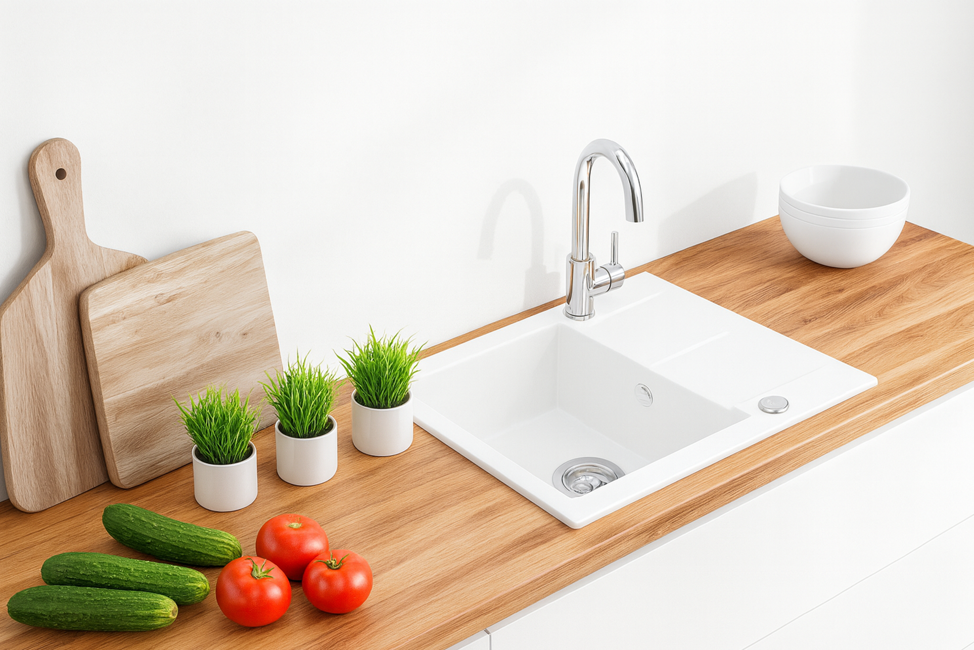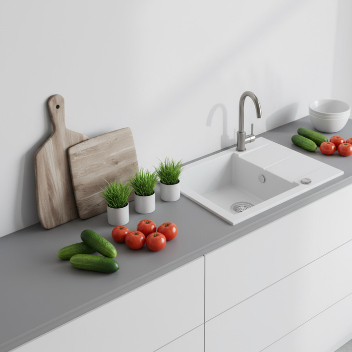 Zlewozmywak granitowy jest odporny na działanie promieniowania UV, dzięki czemu nie blaknie i nie odbarwia się nawet przy intensywnym nasłonecznieniu. Jego kolor pozostaje głęboki i intensywny przez długie lata, co sprawia, że zlew zachowuje swój elegancki wygląd bez względu na warunki oświetleniowe w kuchni.