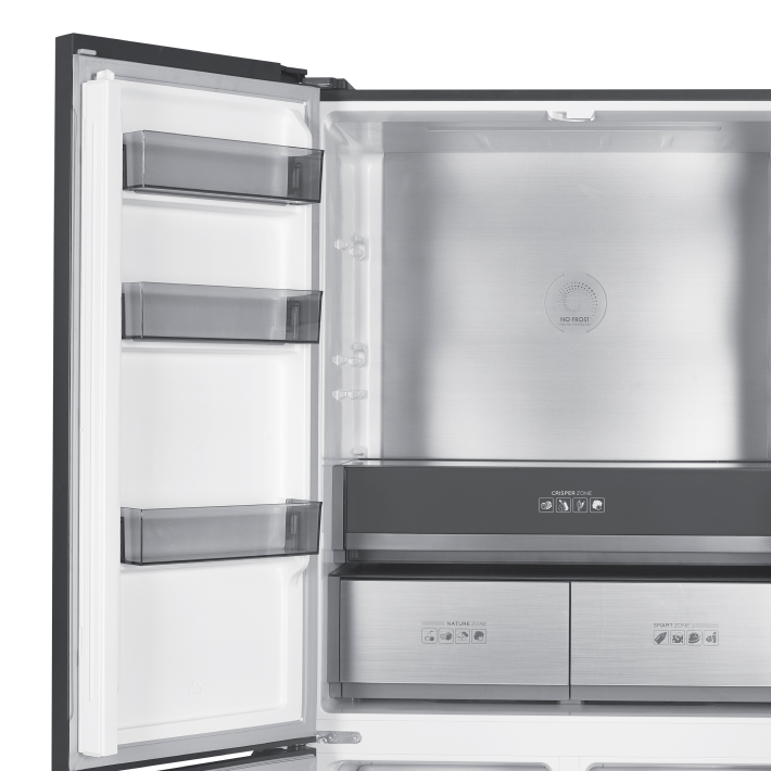 Chłodziarka Multidoor o pojemności 502 litry to idealne rozwiązanie dla dużych rodzin i miłośników zakupów na zapas. Dzięki inteligentnemu rozkładowi półek i szuflad zapewnia wygodne przechowywanie różnorodnych artykułów spożywczych, od dużych opakowań po delikatne owoce i warzywa, zachowując przy tym doskonałą organizację przestrzeni.