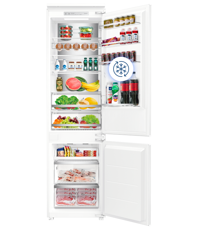 Technologia No Frost to rewolucyjne rozwiązanie, które dzięki systemowi automatycznego rozmrażania zapobiega gromadzeniu się lodu i szronu wewnątrz zamrażarki.