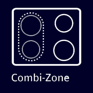 Strefa combiZonecombiZone pozwala połączyć dwie okrągłe strefy indukcyjne dla utworzenia większej powierzchni grzania dla dużych garnków i patelni.