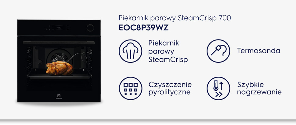 Wyświetlacz TFT umożliwia wygodną zmianę ustawień i czasu pieczenia, nie ma znaczenia czy przygotowujesz muffiny czy apetycznego łososia. Na bieżąco pokazuje najważniejsze parametry i postęp w pieczeniu, także zawsze masz informacje potrzebne do przygotowania rozpływających się w ustach smakołyków.