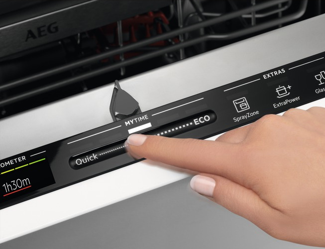 Nie musisz więcej zgadywać, który program wybrać! Wystarczy, że określisz jak długo ma trwać zmywanie, a zmywarka QuickSelect sama dobierze optymalne parametry. Zmywanie potrwa dokładnie tyle, ile chcesz, zapewniając Ci idealnie czyste i suche naczynia.