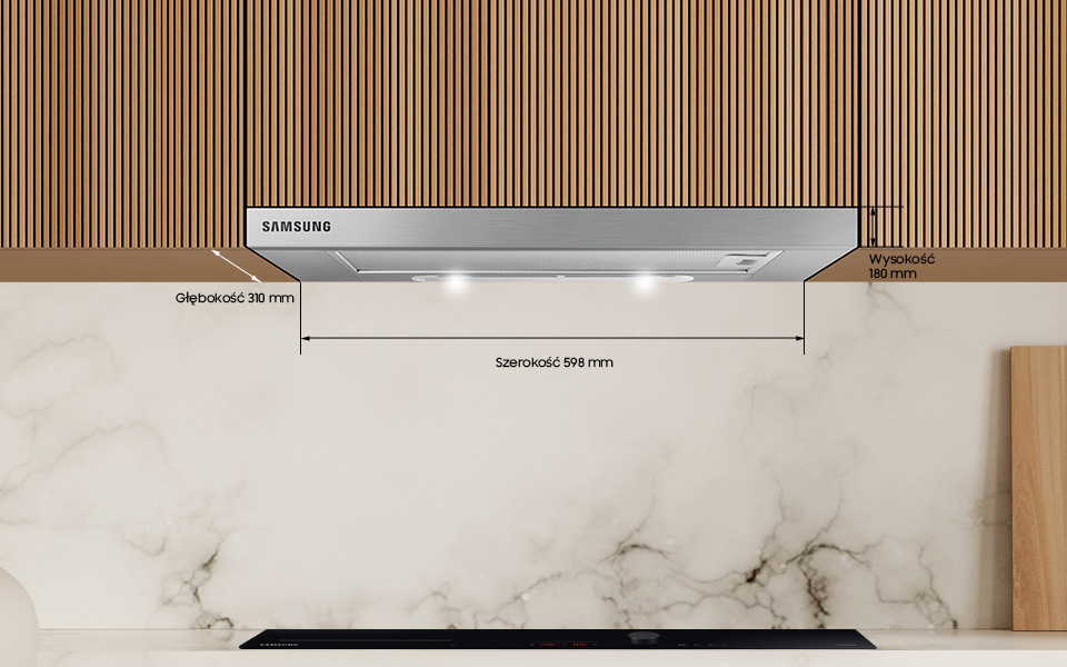 Szybko i cicho eliminuje parę wodną oraz kuchenne opary i zapachy