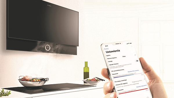 cookConnect – sterowanie pracą okapu z poziomu płytyKontroluj funkcje okapu z poziomu płyty grzewczej. Zarówno elektryczna płyta grzewcza, jak i okap są wyposażone w moduł Wi-Fi, umożliwiający ich komunikację. Gdy płyta kuchenna zostanie aktywowana, Twój okap również zostanie włączony i zacznie wciągać opary zaraz po rozpoczęciu gotowania. Kiedy skończysz gotować, okap automatycznie wyłączy się po krótkim dodatkowym czasie pracy, masz więc pewność, że kuchnia zostanie definitywnie uwolniona od niepożądanych zapachów. Jeśli chcesz bezpośrednio sterować okapem, po prostu włącz tryb ręcznego sterowania na płycie grzewczej, jednym dotknięciem palca. Wtedy będziesz mógł kontrolować poziom mocy okapu za pomocą interfejsu użytkownika na płycie grzewczej. Oprócz poziomu mocy wyciągu, kontroli z poziomu płyty grzewczej podlega też oświetlenie okapu. Korzystając z jednego zestawu kontrolek, sterujesz wszystkim: swoją płytą grzewczą i okapem kuchennym.