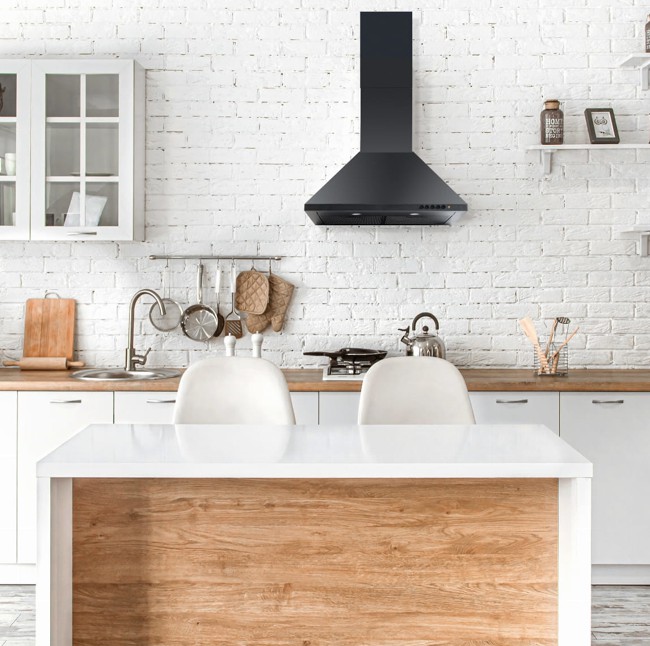 Klasyczny kształt piramidy nadaje okapowi ponadczasowej elegancji, tworząc w kuchni harmonijną kompozycję łączącą nowoczesną funkcjonalność z odwołaniem do sprawdzonych, szlachetnych form.