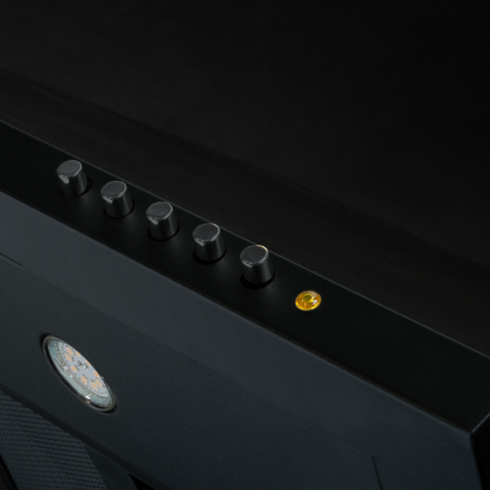 Intuicyjny panel dotykowy z czarnymi przyciskami zapewnia bezpośredni i precyzyjny dostęp do wszystkich funkcji okapu, gwarantując wygodę oraz niezwykle prostą obsługę.