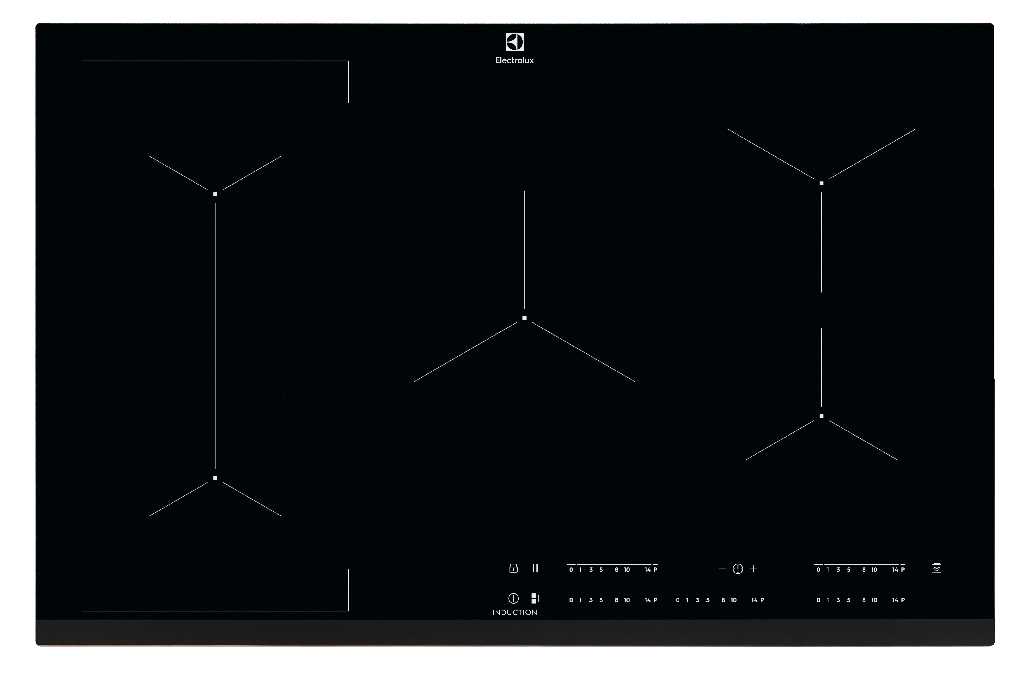 -Strefa przednia, środkowa: indukcja, 2300/3200 W/210 mm