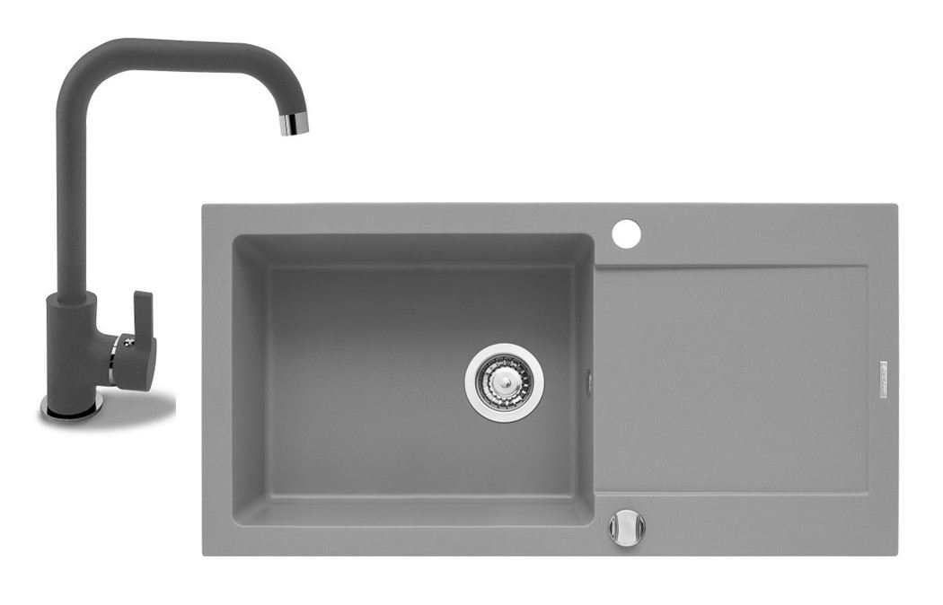 PYRAMIS ZESTAW ZLEW MIDO (100x50) 1B 1D + Bateria SILVIO Szary beton