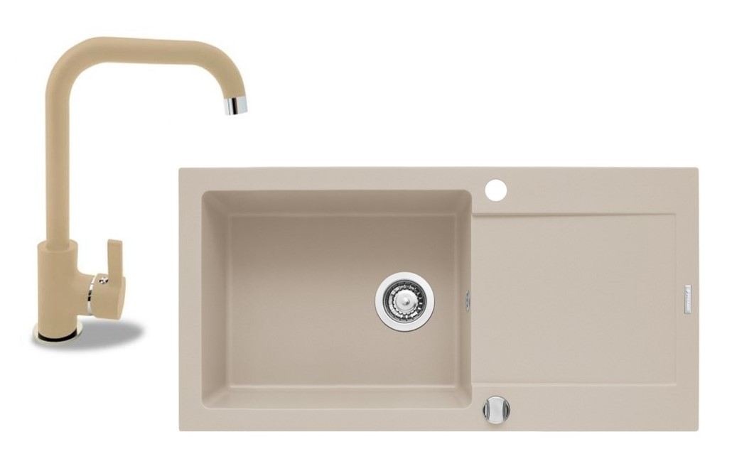 PYRAMIS ZESTAW ZLEW MIDO (100x50) 1B 1D + Bateria SILVIO Beż piaskowy