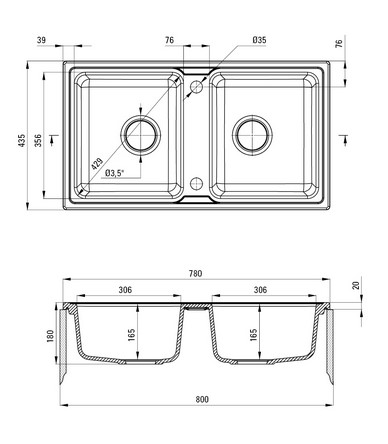 DEANTE ZLEW. ZORBA BEŻ GRANIT 2K B/O 780x435x180, 3,5" + OSPRZĘT SPACE-SAVER