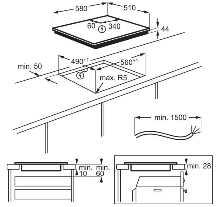 -Strefa prawa przednia: indukcyjna, 1400/2500 W/145 mm