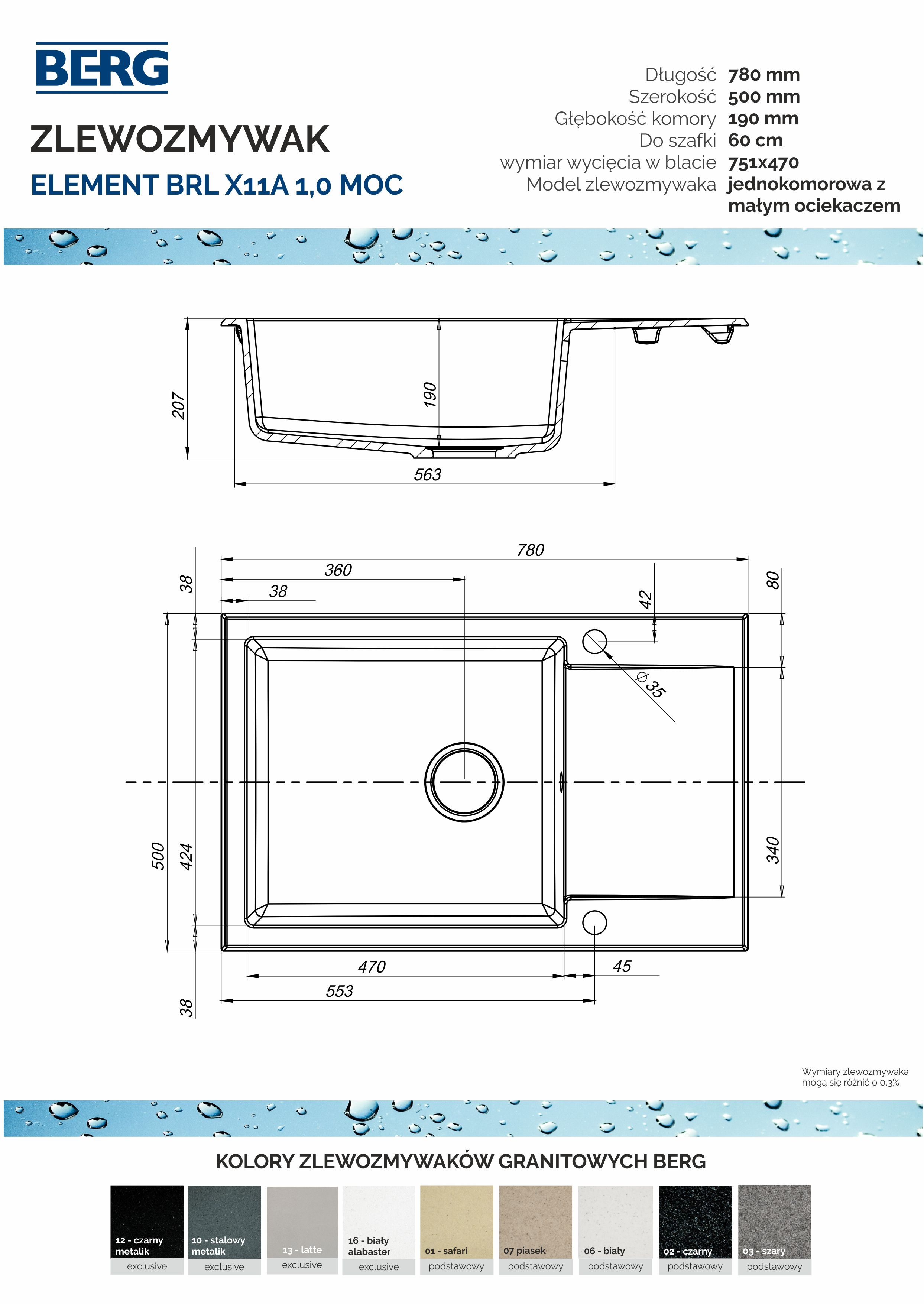 ZLEWOZMYWAK GRANITOWY BERG ELEMENT BRL1211A 1,0 MOC CZARNY METALIK