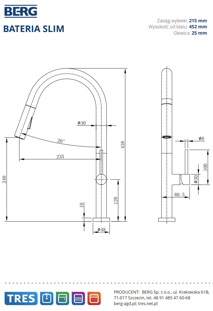 BERG BATERIA SLIM WW STAL SZCZOTKOWANA