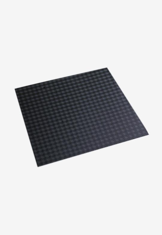 Mata antypoślizgowa AGO-Kristall, czarna w "drobną kratkę". Sztywna, bardzo wytrzymała o grubości 1 mm. Mata docięta jest do wymiarów 522 mm x 474 mm (szer./gł. - wymiar dna szuflady Legrabox do korpusu z płyty 18 mm). Idealnie pasować będzie do szuflady o szerokości frontu 600 mm i głębokości prowadnicy 500 mm.